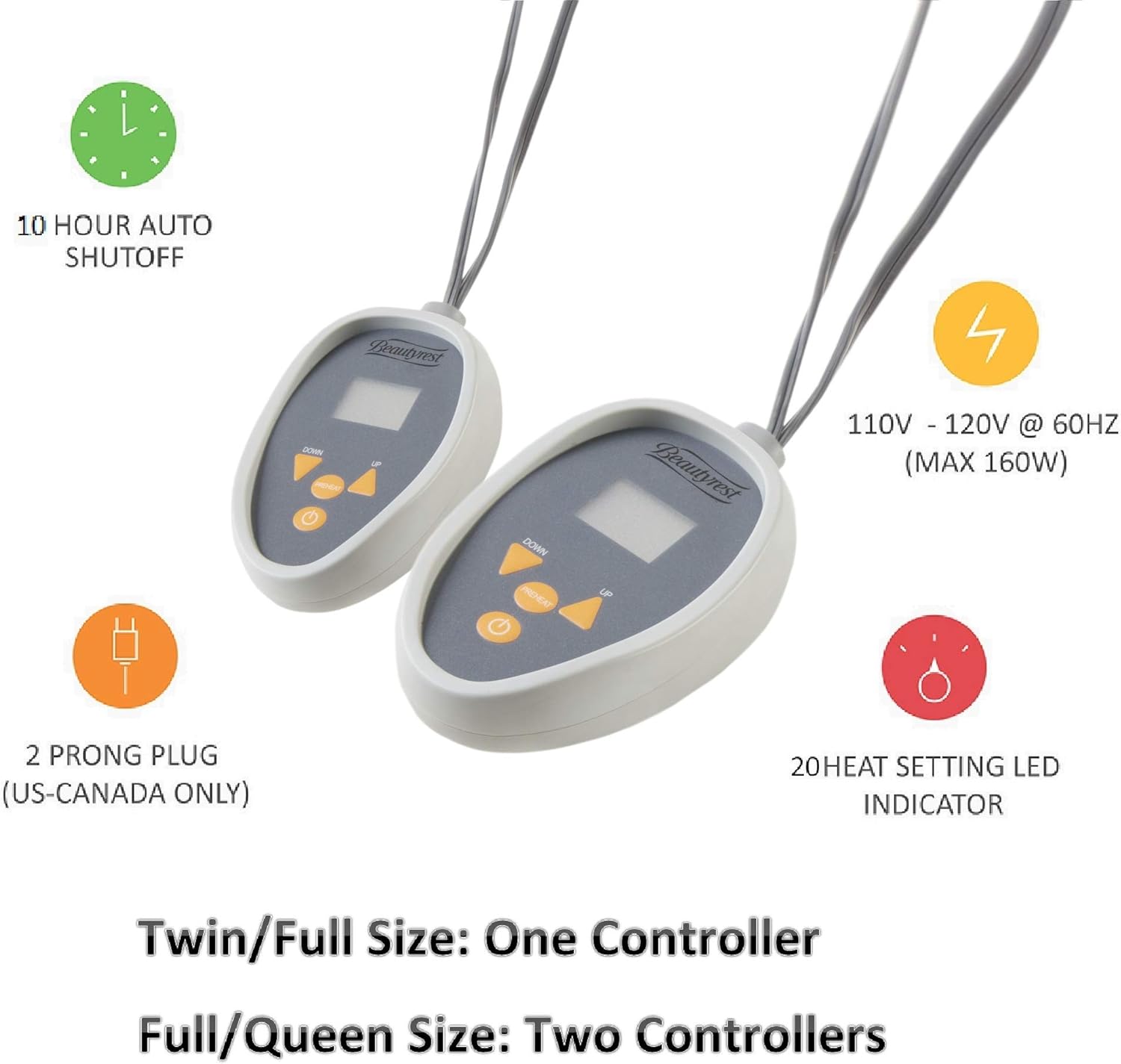 Beautyrest Cotton Heated Mattress Pad – Bed Warmer with 20 Heat Settings Controller, Auto Shut Off Timer, All Around Elastic Deep Pocket, UL Certified, Machine Washable, White King(Twin)