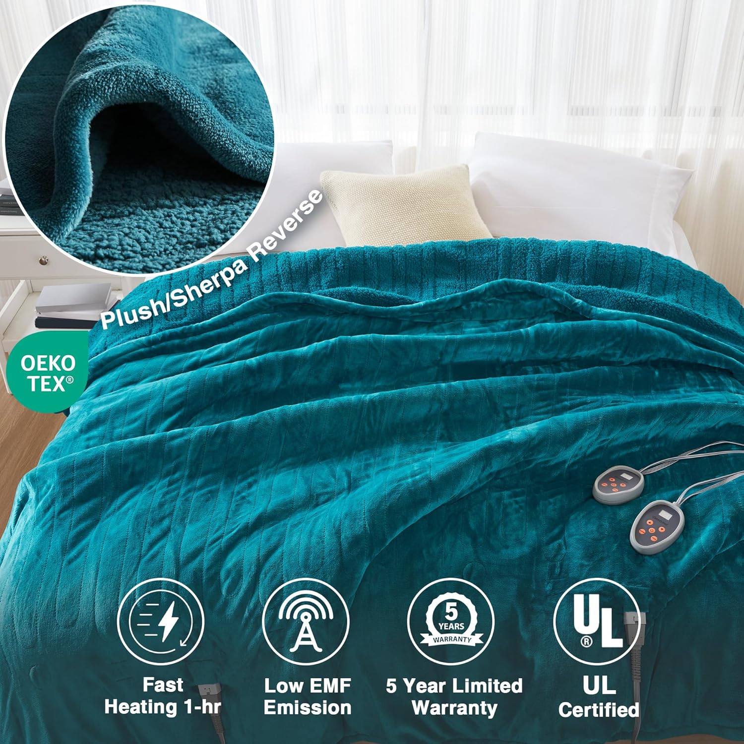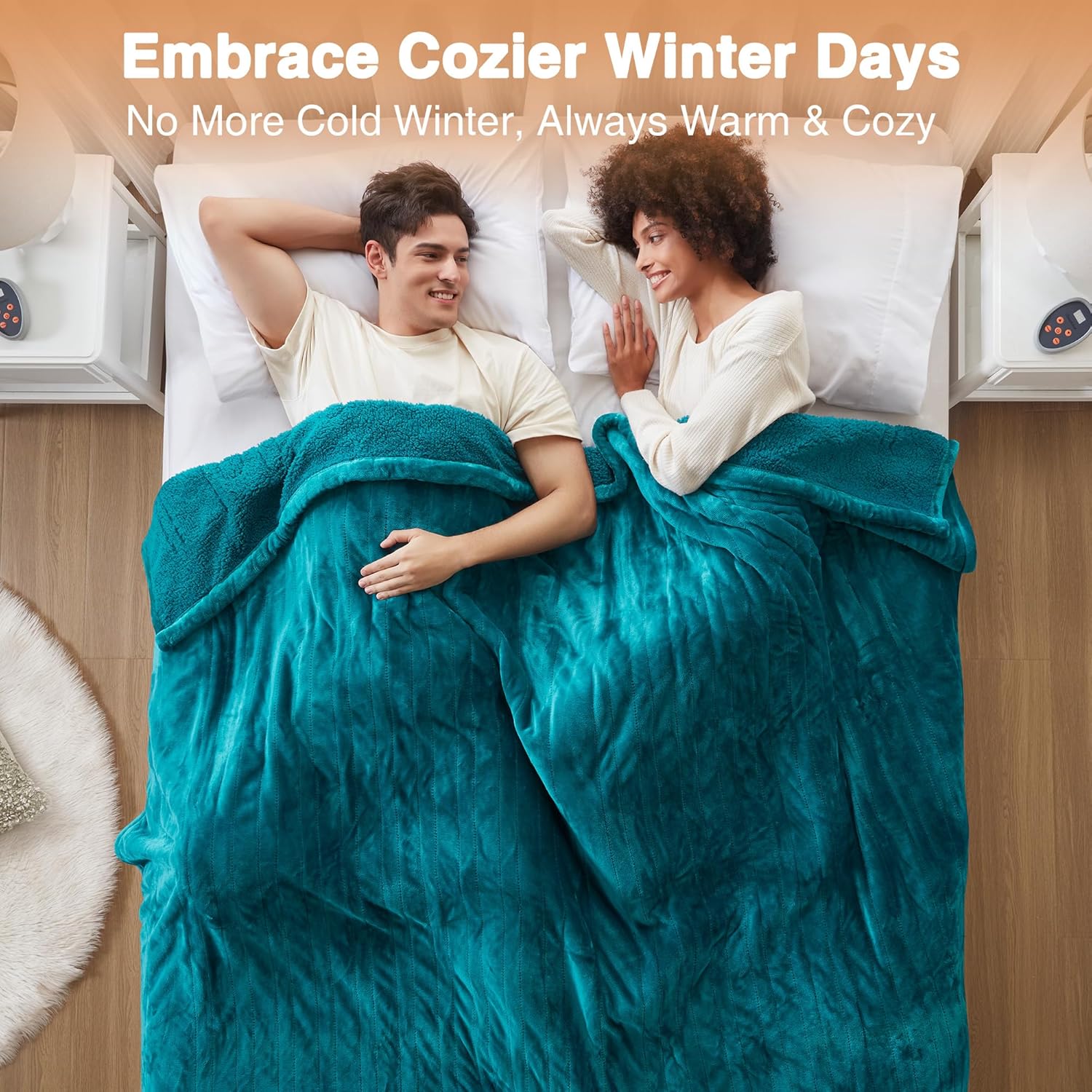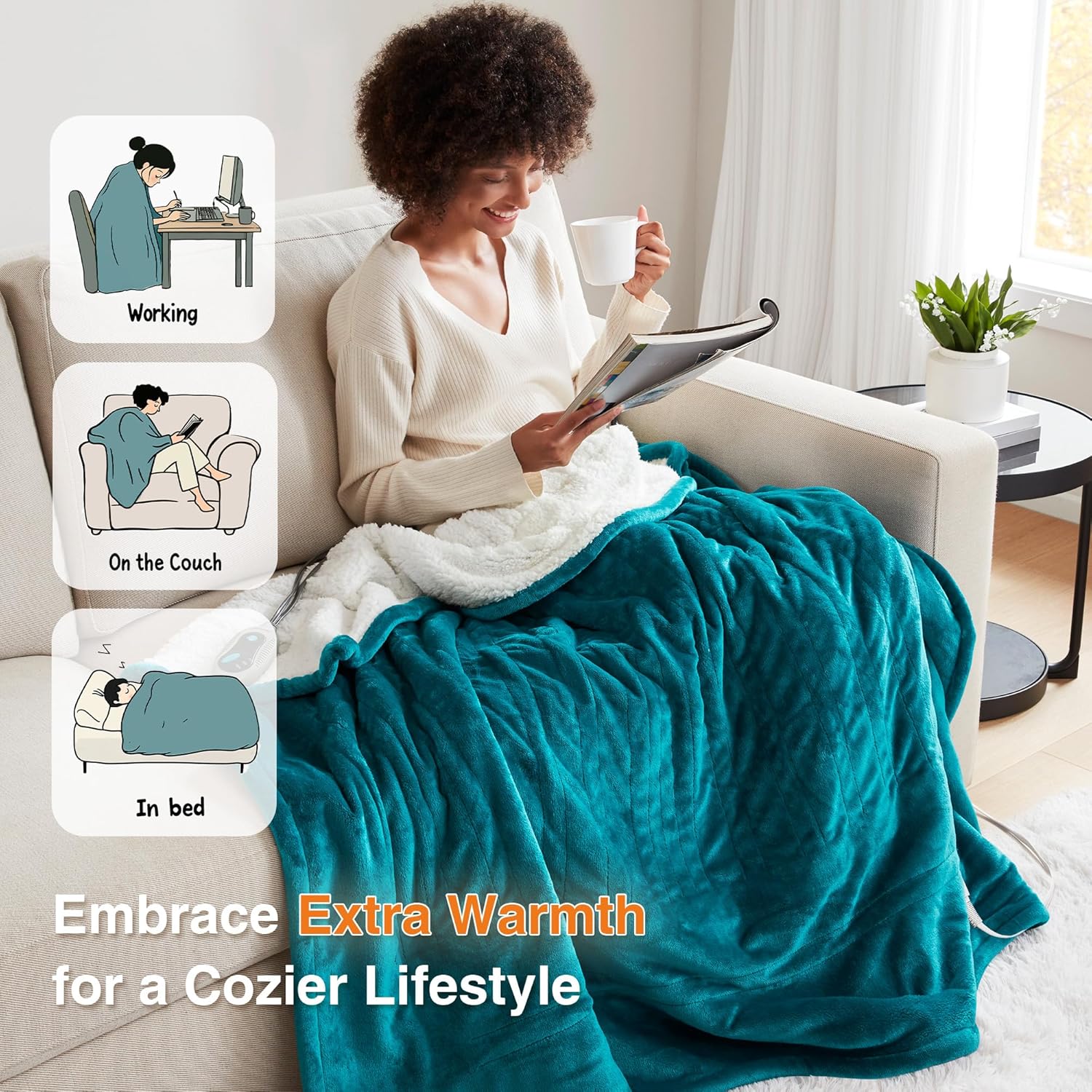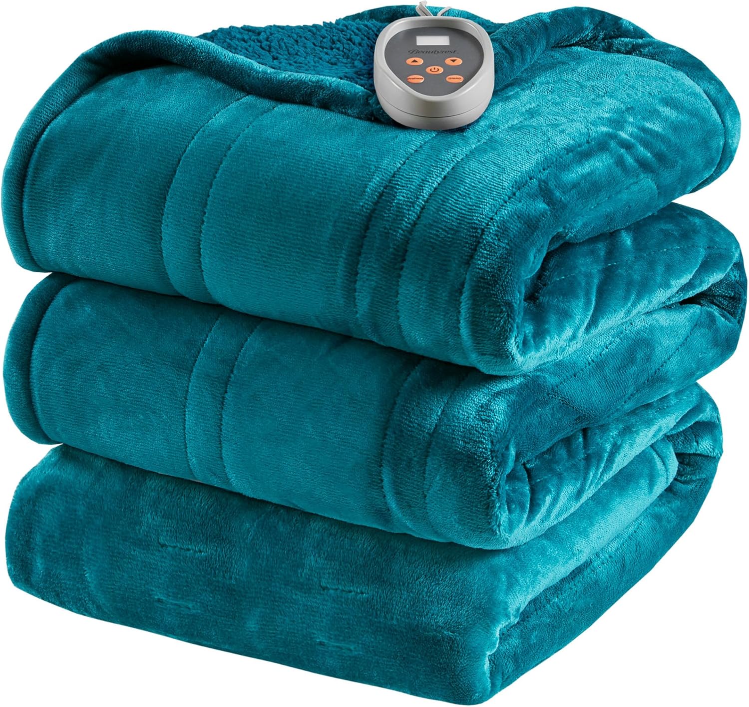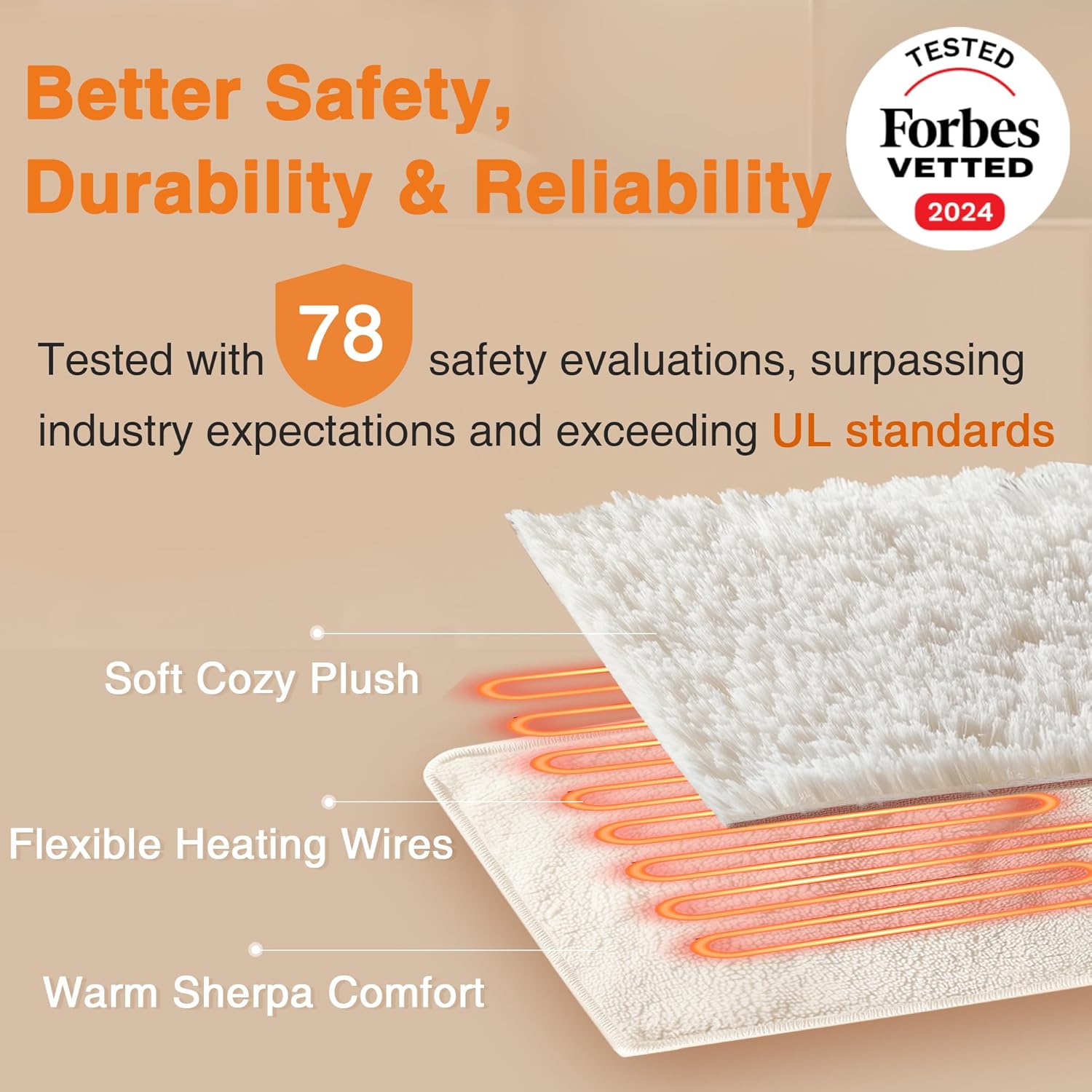 Premium – Made from 200gsm plush & 220gsm sherpa, softer and thicker than standard blankets. It's warmer even without electricity, durable, and resistant to shedding. Evenly spaced & soft heating wires deliver heat evenly for consistent warmth & comfort