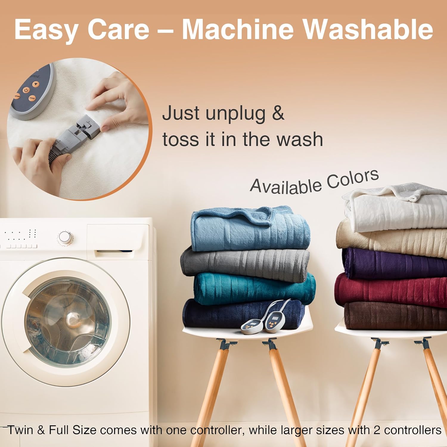 Easy to Use – Oversized coverage 60 in x 70 in boosting comfort & conveniently machine washable, simply unplug it and toss it into the wash. DO NOT LEAVE CONTROLLER COVERED WHEN IN USED TO AVOID OVERHEATING